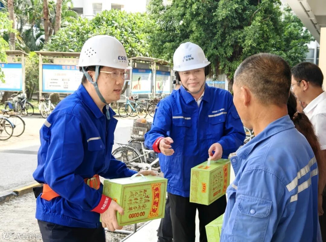 8月8日下午,广州公司工会主席宗伟奇带队深入旗下广船公司驻南沙龙穴造船基地的各项目部,向奋战在一线的环卫、保洁、物管、维修、值班等生产一线服务人员送去清凉与关怀;叮嘱大家要树牢安全防范意识,在雷雨高温天气下,既要严格遵守操作规程,做好设备的安全检查与防护,又要时刻关注自身身体状态,合理安排工作与休息时间,确保生产安全和身体健康,在安全健康的前提下完成各项生产任务。