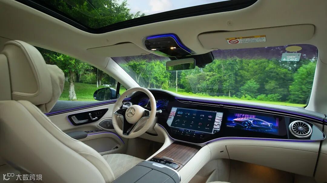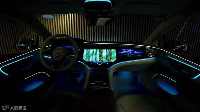 置身EQS,打开畅心醒神功能,灵动的“林间静地”之声,搭配流光溢彩的氛围灯,带来沉浸式视觉听觉盛宴,非常“巴适”。