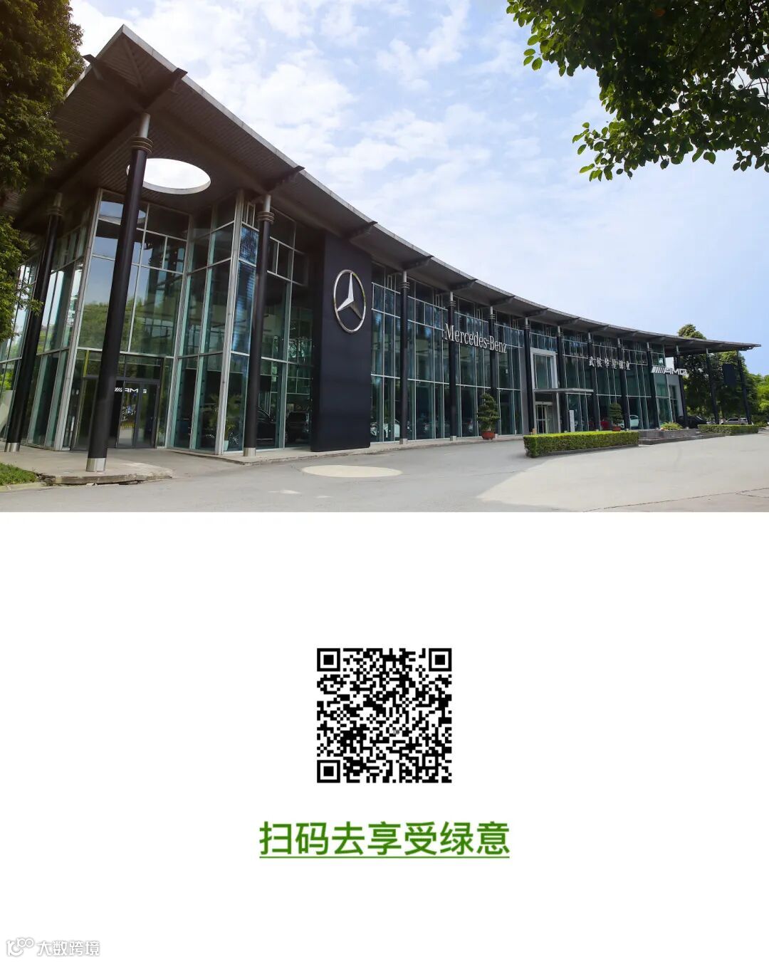 到访一座生态园林式的奔驰4S店,游览“五面植绿”的展厅。