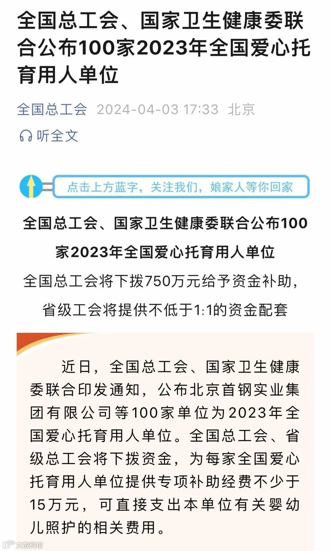 4月3日,中华全国总工会办公厅、国家卫生健康委办公厅公布2023年全国爱心托育用人单位名单,中国船舶集团广州公司成功上榜。这是船舶行业首家被纳入该名单的企业。