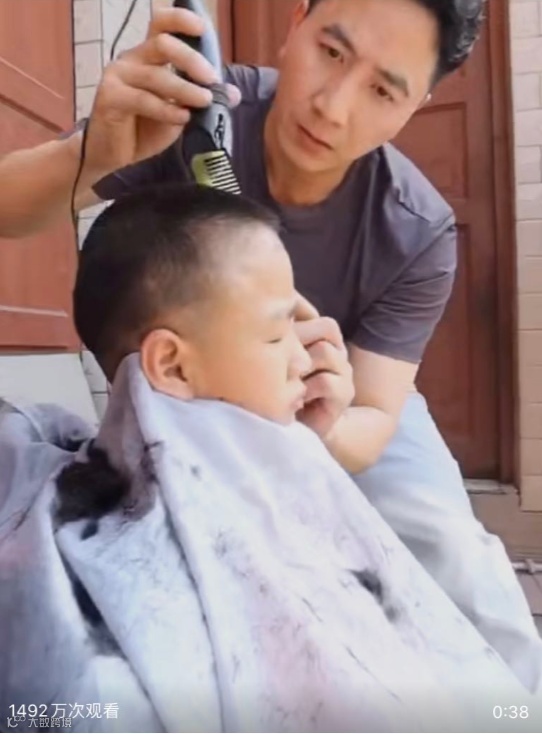 林爸爸听了小男孩的遭遇很是心疼,他亲自给他剃头发,换新衣。