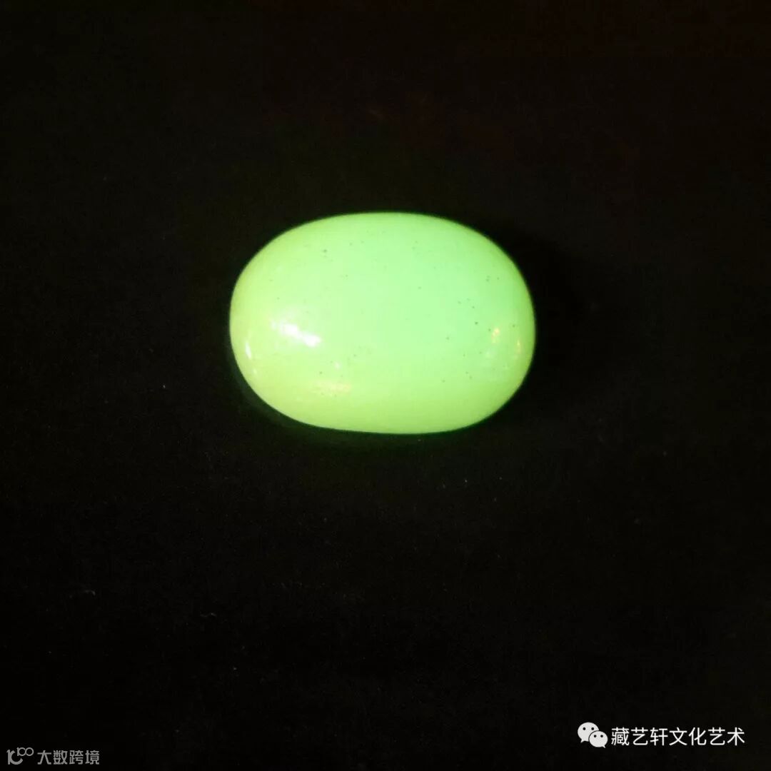 此件夜明珠表面圆滑光润,流光熠熠,置其于暗室,自然呈现有莹亮青绿之色,发出由绿到白的荧光,实属珍奇。夜明珠是极稀有和罕见的。具有极高的科研、收藏价值。现今夜明珠的问世,不仅使夜明珠的历史记载得到印证从神话走进现世,又引起了考古界、历史界、地质界和珠宝界的重视,占星学家称其是“集天地之灵气、凝日月之光辉、孕万物之风彩”的自然界菁英,同时也引起了收藏界的重视,其市场的价值已经炙手可热,成为人们喜爱的收藏品。