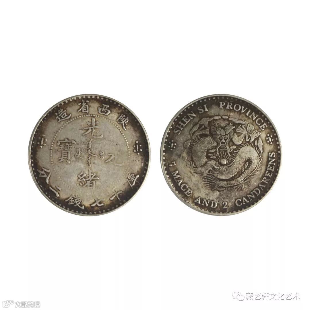 此陕西省造光绪元宝库平七钱二分,正面点圈内镌汉文和满文“光绪元宝”字样,上镌“陕西省造”五字,下镌“库平七钱二分”六字,两旁镌花饰。背面蟠龙居中,外圈为英文,并镌有“7”和“2”阿拉伯数字,两旁镌小花饰。该币因属试铸样币,设计精美,铸工精良,为中国银币二十珍之一。 在国内存世 量极少,中国是世界上最后一个结束银本位币制度的国家,铸额极其稀少,具有极高的收藏价值,值得收藏!