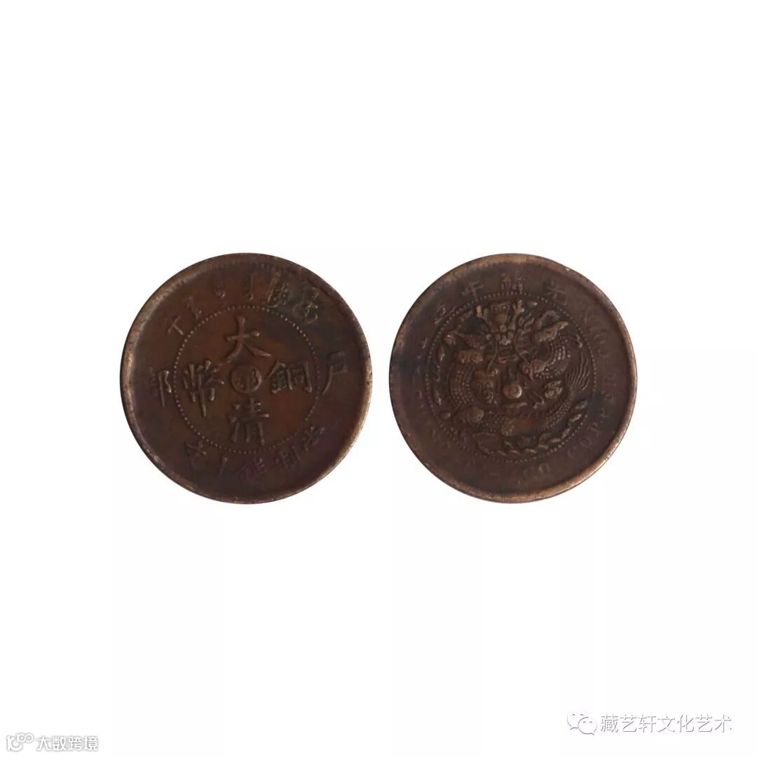 Daqing copper coin: The front side of the Daqing copper coin has four characters of "Daqing copper coin", the center has a small word "E", the upper edge of the Pearl circle is inscribed in Manchu, the lower edge of the coin is worth "ten words when making money". The left and right sides have the word "Binwu" in the dry branch year, and the left and right sides of the "Hubu" in the middle, the font is graceful and elegant; the back is inscribed with a picture of Panlong, engraving "Guangxu year". The dragon pattern is still as good as the knife engraving, the casting technology is superb, and the dragon body pattern is exquisite, and it is set off by the sea of clouds, majestic and awe-inspiring.