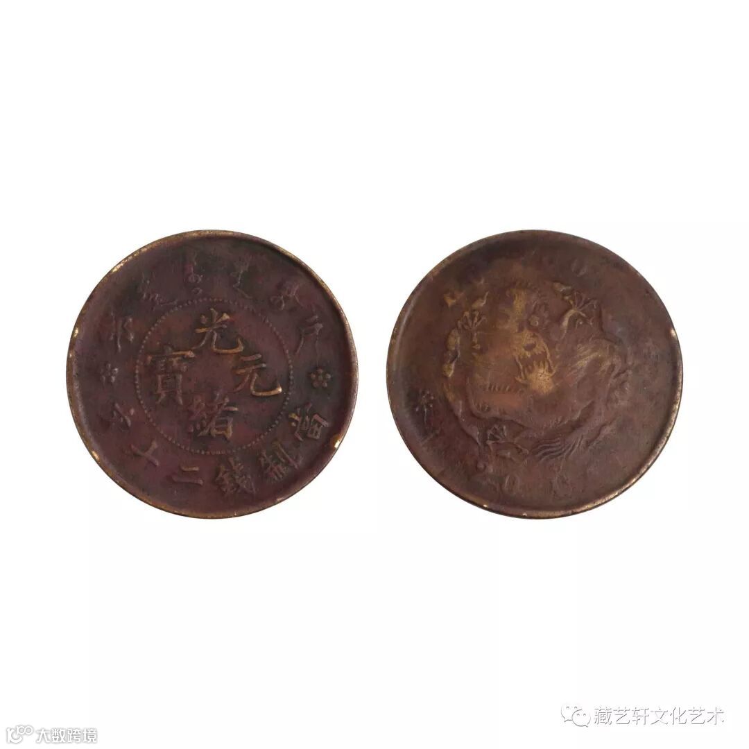 此枚户部光绪元宝当制钱二十文,钱币正面珠圈内铸有光绪元宝四字,上缘铸有大清铜币满文,左右户部二字,下缘铸有当制钱二十文,标明钱值。背面铸有四爪飞龙,外环铸有英文;该该钱币表面的包浆自然、历史留下的痕迹清晰可见,极具收藏价值和观赏性,即便是对光绪铜币没有研究的外行也是爱不释手。
