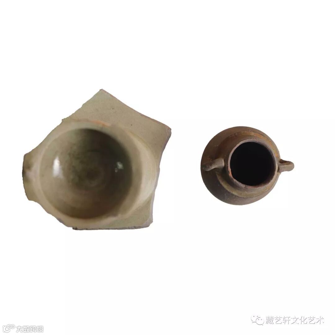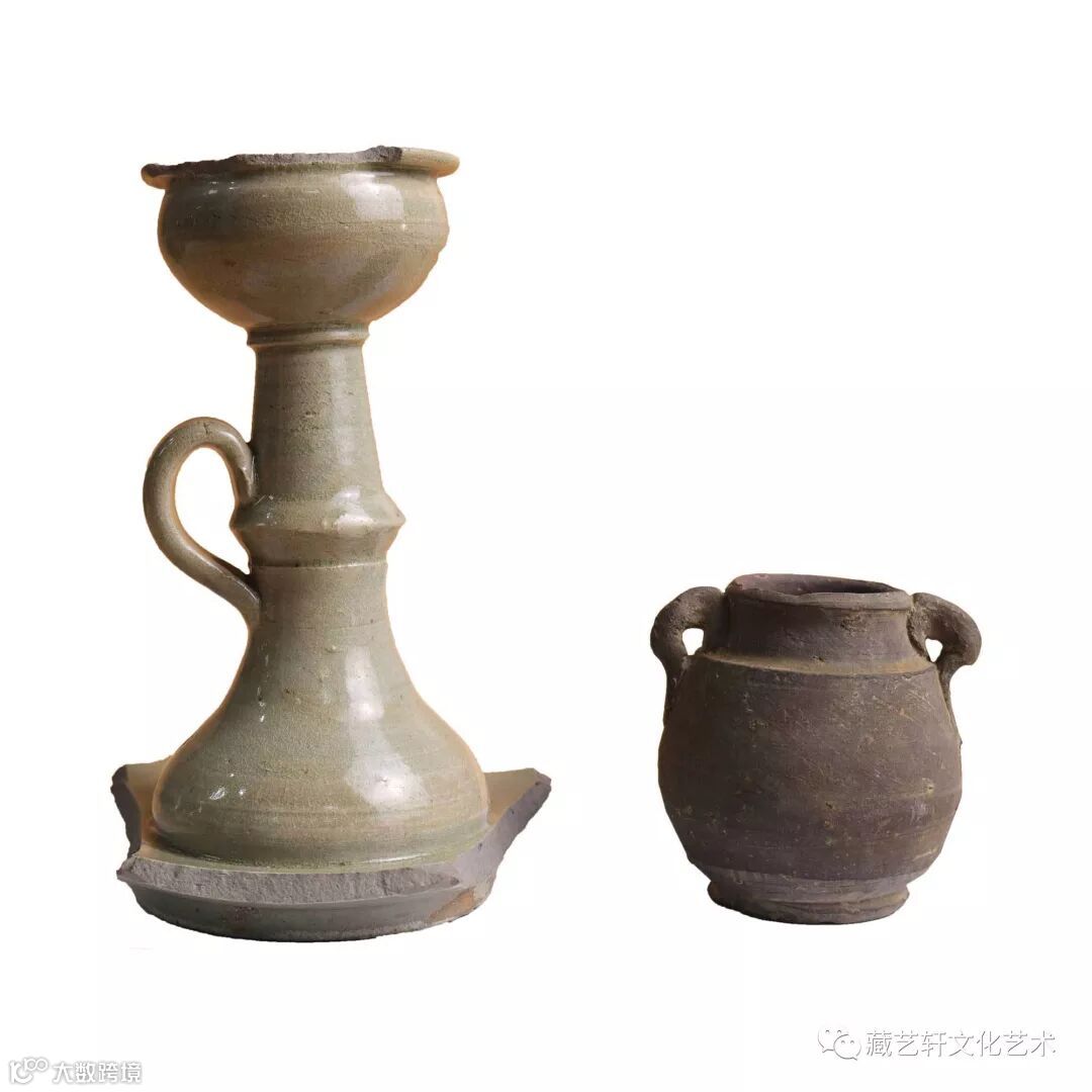 唐晚期秘色瓷油灯,陶罐