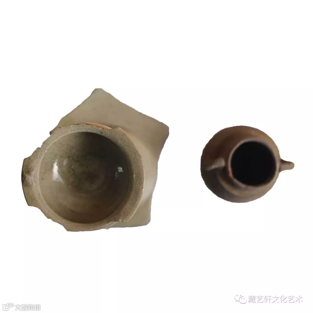 此件陶罐为双系陶罐,器型精细,成型规整、实用。器物上或刻或划,或施彩或上釉,装饰相当美观,以后历史时代的日用陶器很少能与汉代相比的。陶罐灰色浅淡而均匀,质地坚实耐用。陶是瓷器之祖,没有陶器,就不会有瓷器的蓬勃发展,陶器极具学术价值,它从一定程度上反映历史的面貌。此件唐晚期秘色瓷油灯和陶罐,久经沧桑,历经多少朝代,流传至今,能较为完好的保存下来,属实不易。瓷器和陶器为当时生活使用器物,反映了当时的生活文化,历史文化,极具收藏价值和文化价值。