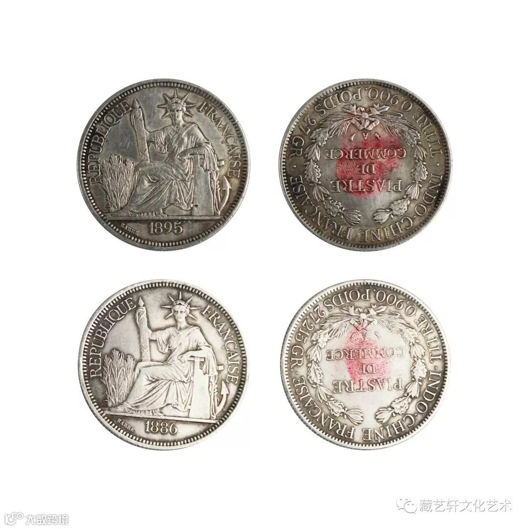 The collection is divided into 1886 and 1895 seated coins. The main picture on the front of the silver coin is the statue of the goddess of liberty with a club. The French characters on both sides of the seated coin are REPUBLIQUE FRANCAISE. Below the constellation of Goddess are the small-character French BARRE and the year in which the currency was issued. The main pattern on the back of the silver coin is a wreath, and the circle is the explanatory text. The French on the top of the wreath is FRANCAISE INDO-CHINE. The horizontal text in the middle of the silver coin wreath is the denomination of the silver coin: PIASTRE DE COMMERCE. This group of coins is a testimony of foreign powers'infringement on China's trade, which is of great research value and collection significance.