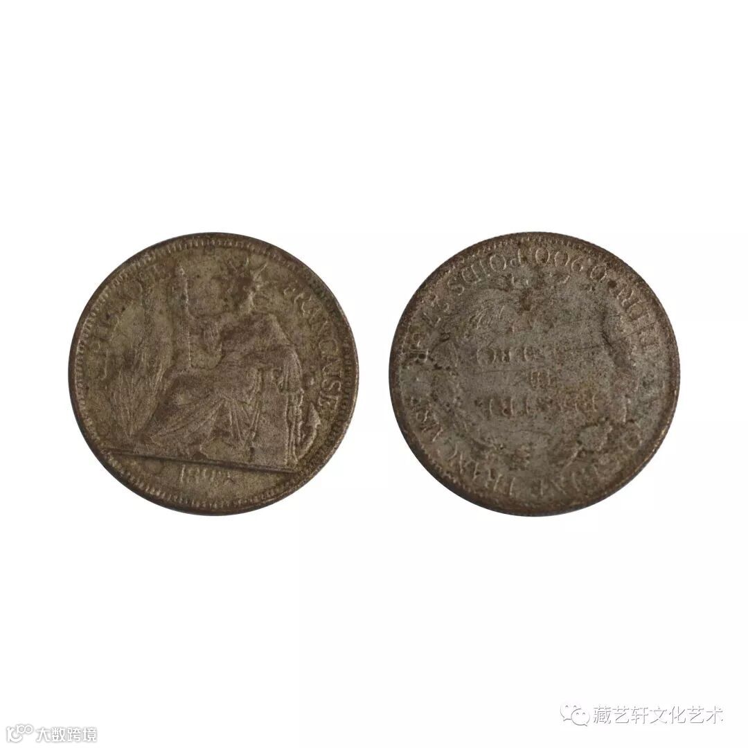 此枚钱币正面中央是手执束棒的自由女神坐像,两侧是法文译为法兰西共和国,下方是发行年份;背面为麦穗花环,花环上方铸法文译为法兰西印度支那,中间是法文译为皮阿斯特贸易银。此币保存较好,其色泽自然,不论是文字还是图案,都显得自然细腻,深浅合适,纹饰清晰有致,在众钱币中显得略不一般。设计新颖,铸工精湛;具有极高的收藏价值和艺术价值。