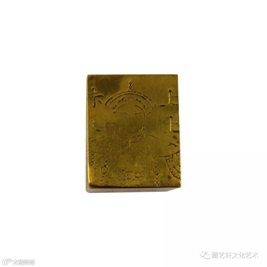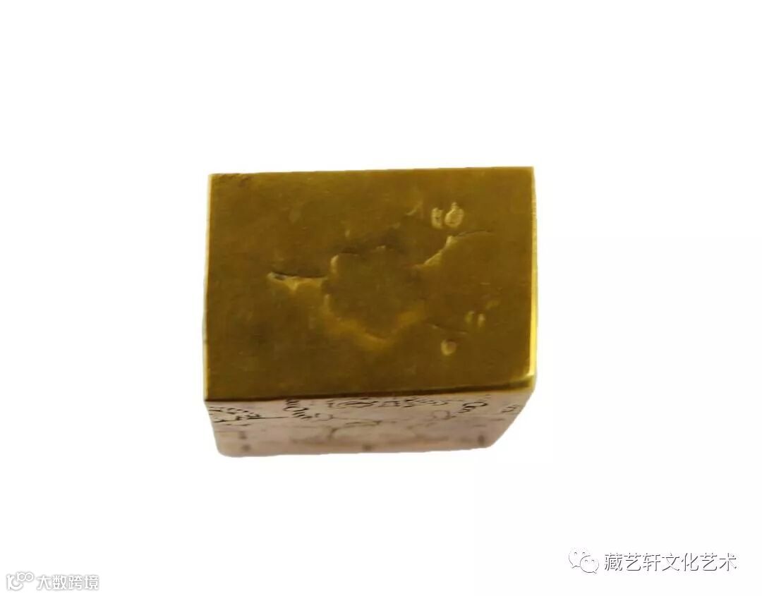 此藏品清龙金宝为长方体形状,正面中间珠圈刻有“清龙金宝”四字,纹路细腻,浮雕感强烈。背面中间珠圈内龙纹栩栩如生,龙珠清晰可见。虽表面稍有磨损,但是依旧清晰可见其纹饰,刻制精美。此清龙金宝形制规整,色泽纯正,清代遗留下来的此类金宝存世量有限,具较高的收藏的价值。上千年的岁月流逝,我们已无法考究这金宝到底经历过怎样的人间沧桑,只有它上面遗留的痕迹,无声地诉说着曾经的历史和辉煌。