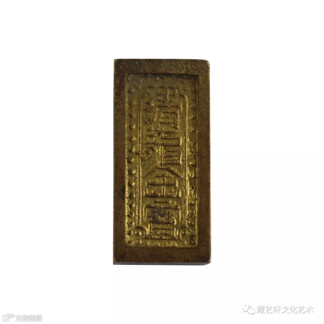 此块大清金库光绪三年金锭,注意:(光绪三年、光绪帝才七岁)刻有历代皇帝头像,大清金库上上赤足字样,清代金库,镇库之宝,铜质色泽纯正,包浆痕迹明显,制作工艺简单大方,纹饰精美,品相完好,实属罕见,具有极大收藏价值。