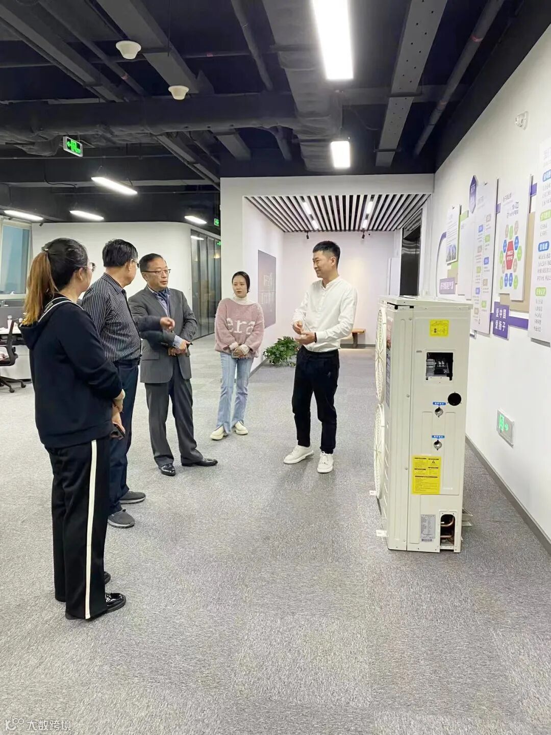 周总还向考察团领导介绍了扬子空气能的“低温喷气增焓技术”、“智能除霜技术”、“热泵专用压缩机”等技术,这些技术很好地解决了北方冬季严寒采暖的难题,大大提升了产品的稳定性。