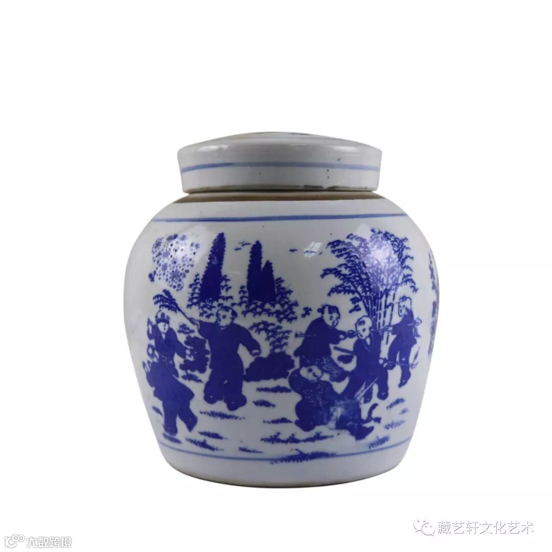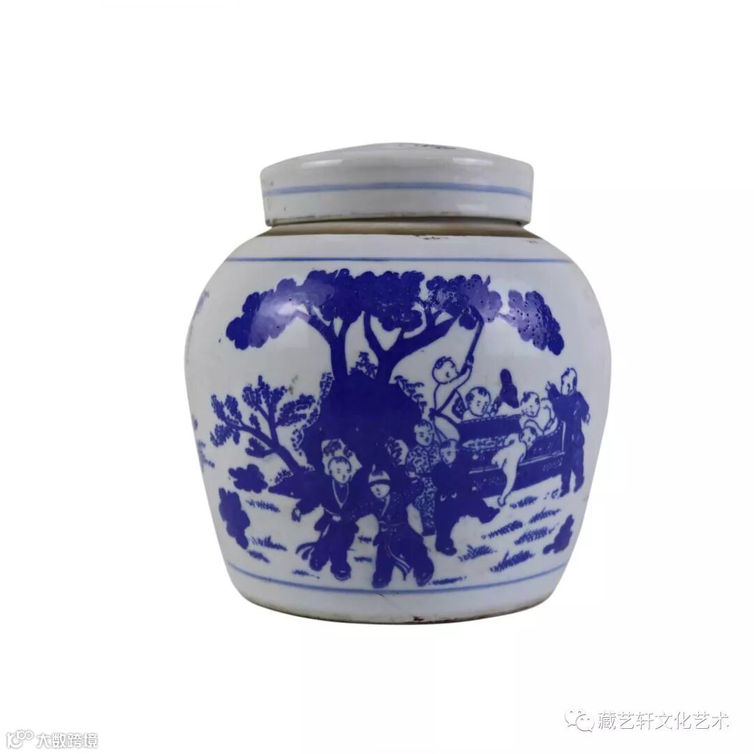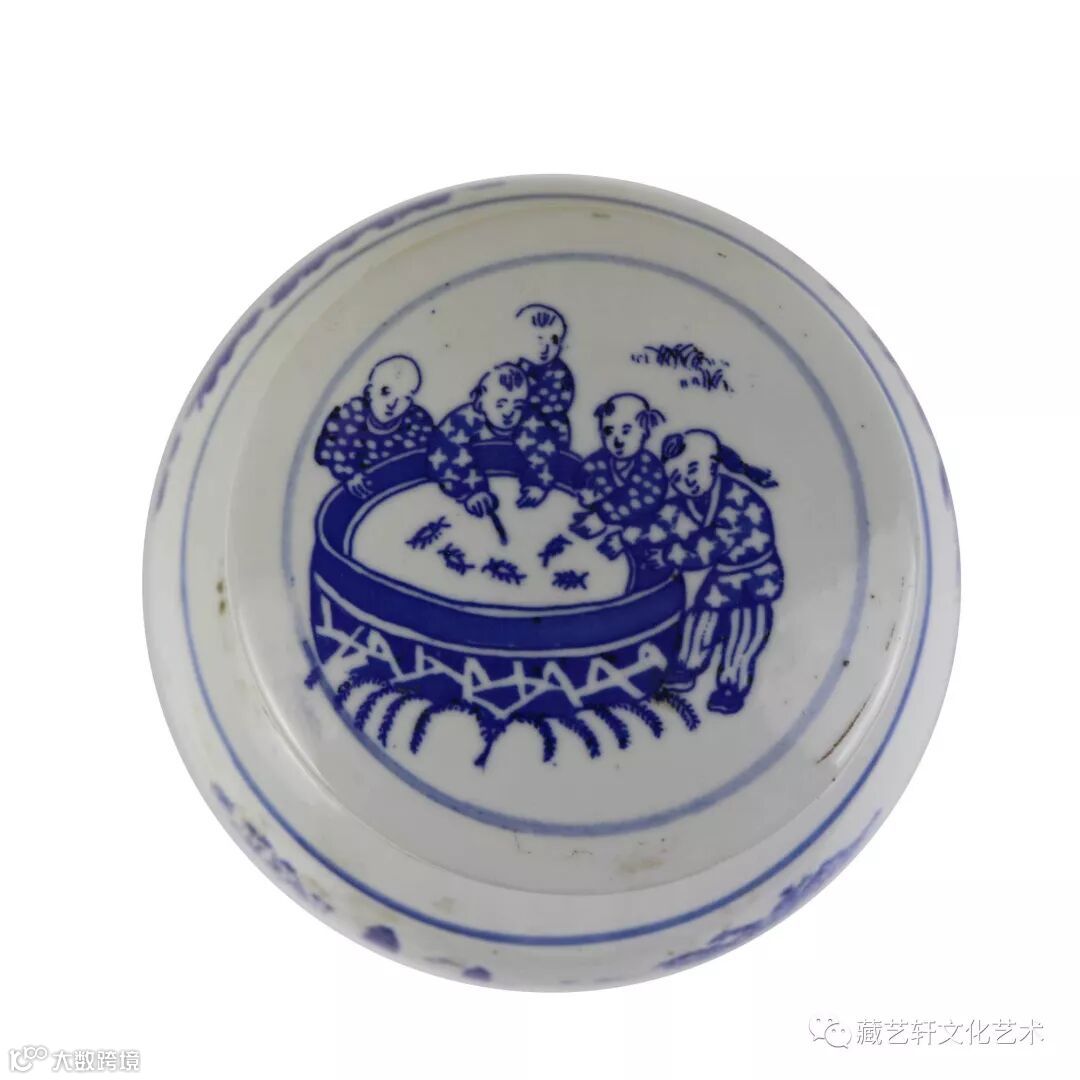 此藏品器型规整,胎质细密坚实,釉水莹润,包浆一流,发色浓淡有序,清丽畅快。青花发色鲜艳,人物栩栩如生,形态各异,儿童怡然自得,充满浓厚的生活气息,隐含了家族兴旺的寓意。