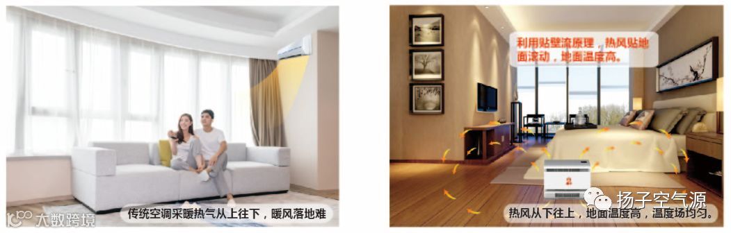 空调:无论是立柜式空调还是挂墙式空调,都只能利用主动式热出风的方式来实现供暖。