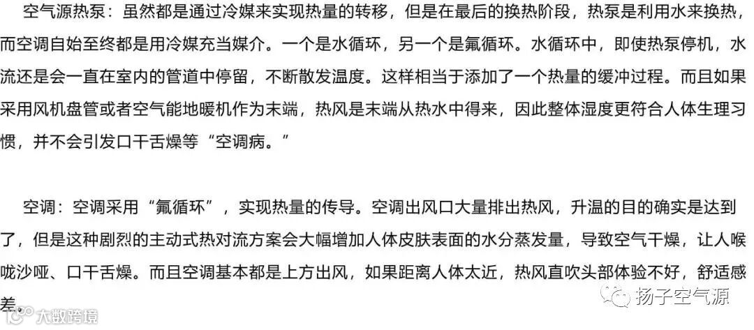 第一,无论是制冷还是制热,空调的工作时间较长,制冷或制热的空间较大,制成的冷/热空气容易流失,所以空调的功率一般比较高。而空气源热泵虽然是全天通电,但是当制热完成后,机组就会停止工作自动保温,这个过程不需要耗电,优质水箱的保温效果可以达到72小时以上。家用机一般每天的工作时间不会超过2小时,所以空气源热泵要比空调省电,且能更好地保护压缩机,延长其使用寿命。