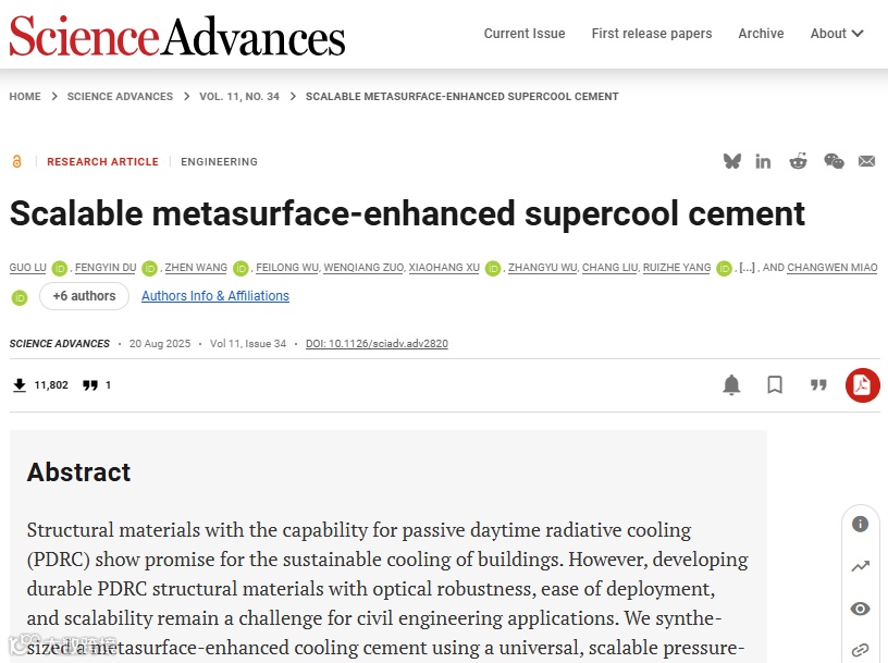 团队还做了很多测试,比如在正午太阳最强的时候,这种 “超冷水泥” 能比周围温度低 5.4℃,比普通水泥低 26℃;把它泡在酸碱液体里、用紫外线照、反复冻融,它的强度和降温能力都没明显变化。另外,通过计算机分析它从生产到使用的全周期,发现它甚至可能实现 “负碳排放”,也就是整个生命周期减少的碳比生产时释放的还多。