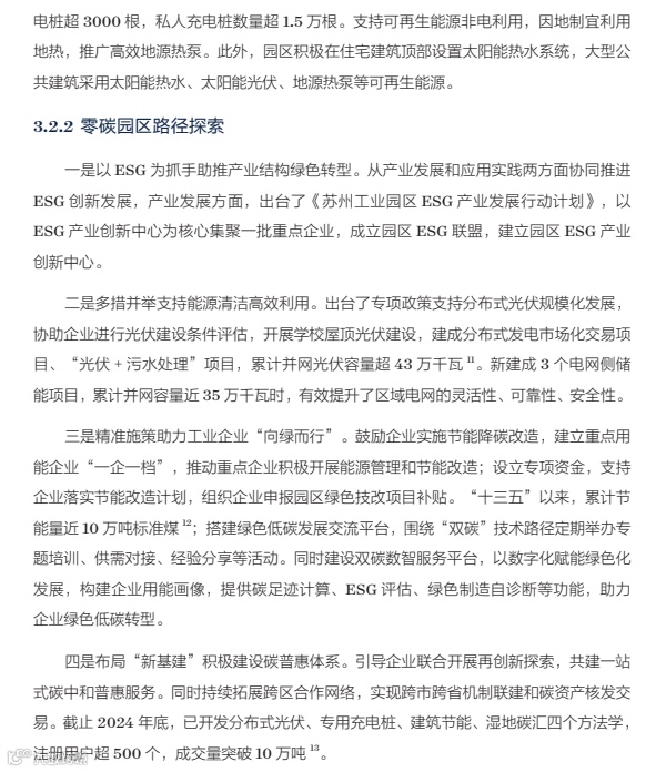 苏州工业园区是外贸强区,2024 年 GDP 突破 4000 亿,高新技术产业占比超七成。他们重点抓 ESG,成立了 ESG 产业创新中心和联盟,还出台了专项政策支持分布式光伏,累计并网超 43 万千瓦,建了 3 个储能项目。