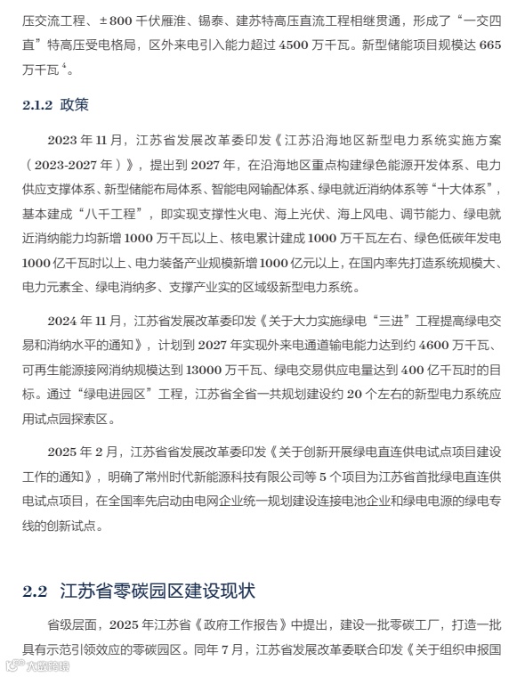 先说说好消息,江苏在新能源方面的底子很扎实。到 2024 年底,可再生能源装机已经超过煤电,光光伏就有 6165 万千瓦,全国第三。特高压电网也给力,能从外面引进 4500 万千瓦的绿电,还有 665 万千瓦的储能项目撑着。政策上也不含糊,从省级到苏州、无锡、常州这些市,都出台了零碳园区建设方案,已经有 36 个市级试点在跑。
