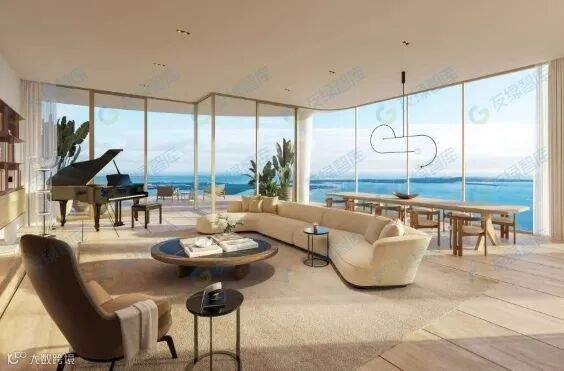 大楼的内部设计同样令人惊艳。建筑的底部主要包含大堂和便利设施,空间布局合理,装修精致,为居民提供了舒适便捷的公共空间。从10层到65层则是住宅单元,每个单元都经过精心设计,空间利用率高,采光充足,能够充分满足居民的居住需求。塔楼的顶部专门用于设置额外的设施和屋顶观景台,居民可以在这里欣赏到迈阿密壮丽的城市天际线和海湾美景,享受高品质的生活体验。