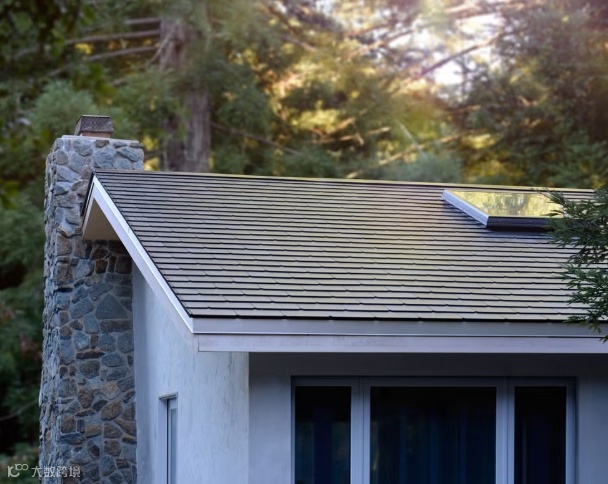 带有特斯拉光伏瓦的屋顶