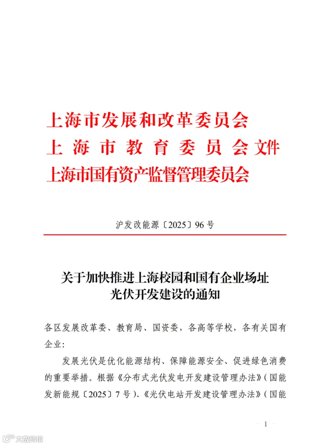近日,上海市发改委、教委、国资委联合发布《关于加快推进上海校园和国有企业场址光伏开发建设的通知》(文件原文见附件),文件提出: