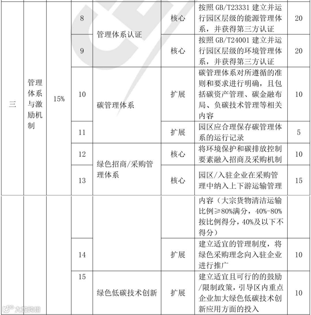 点评:管理要求方面需要园区制定目标,并配套相应的规划方案和管理程序,言简意赅、清晰明了。