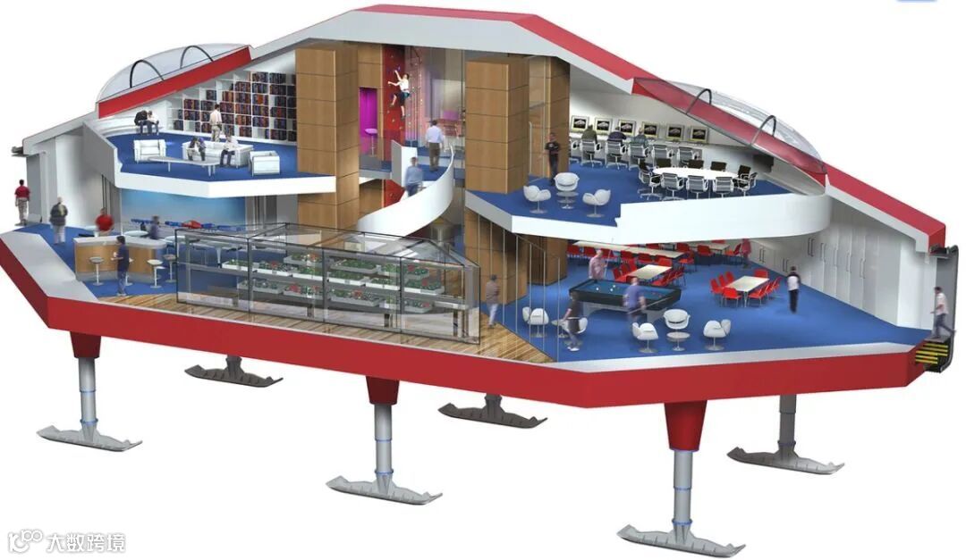 除此之外,这并不是一个单纯的科学研究基地,内部的生活设施也是一应俱全。据介绍,最多可容纳52人一起生活。