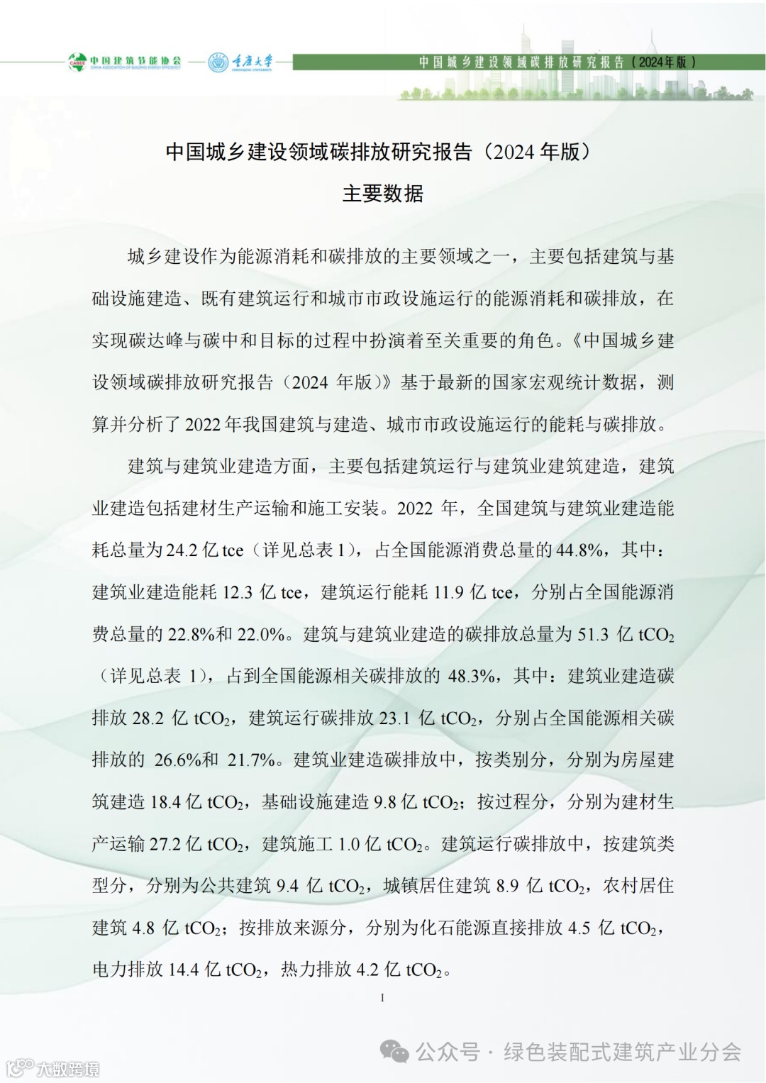 导读:2025年1月18日,中国建筑节能协会联合重庆大学共同在京发布了备受瞩目的《中国城乡建设领域碳排放研究报告(2024年版)》。这是连续第九次联合发布年度研究报告,旨在为城乡建设领域的绿色发展提供数据支持与决策参考。