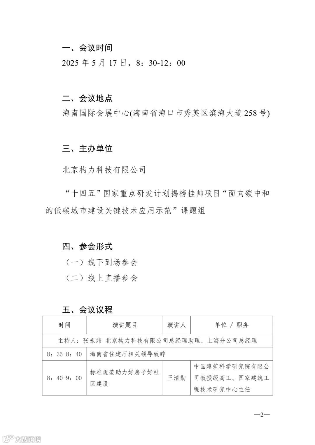 会议议程