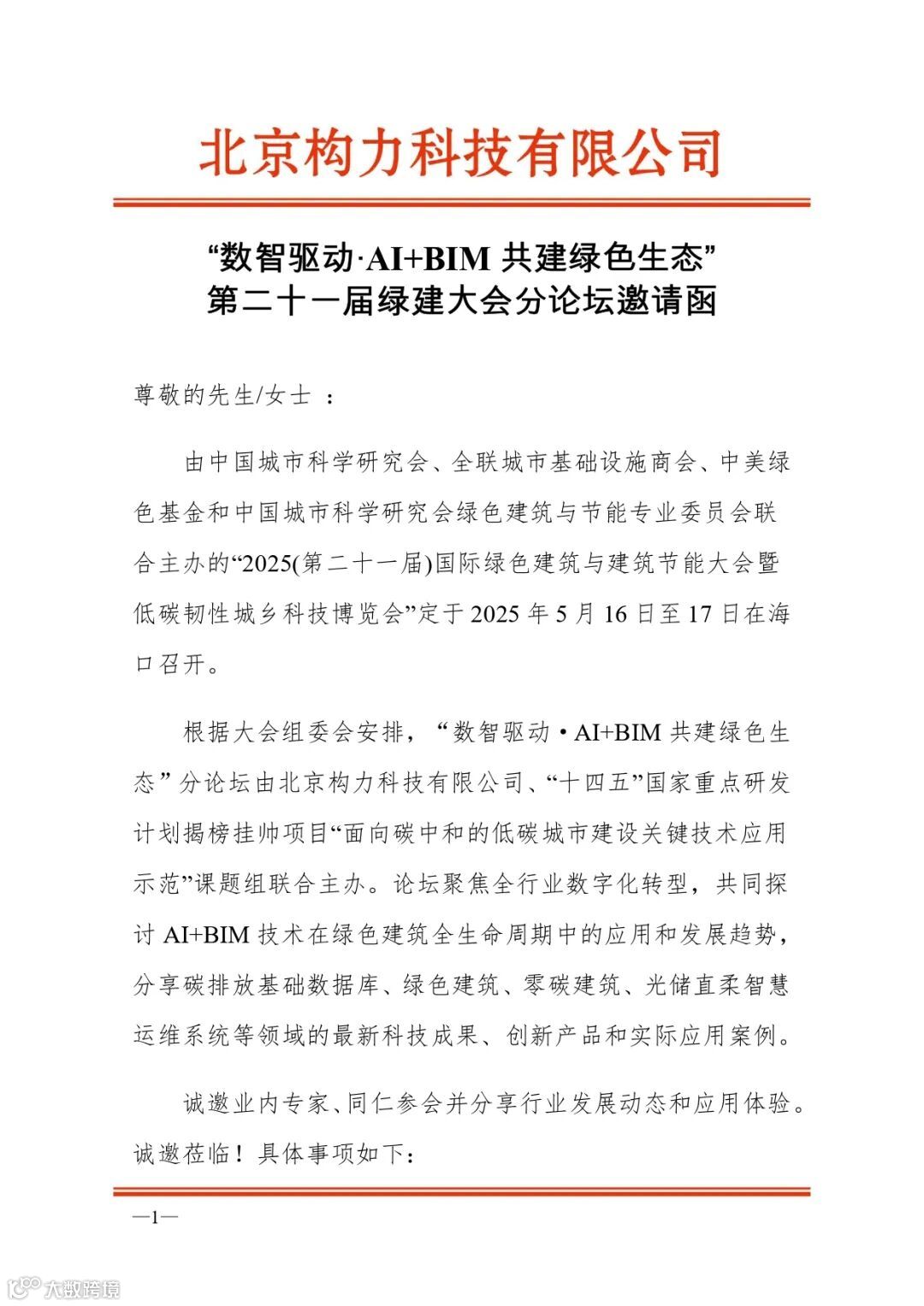由中国城市科学研究会、全联城市基础设施商会、中美绿色基金和中国城市科学研究会绿色建筑与节能专业委员会联合主办的“2025(第二十一届)国际绿色建筑与建筑节能大会暨低碳韧性城乡科技博览会”定于2025年5月16日至17日在海口召开。