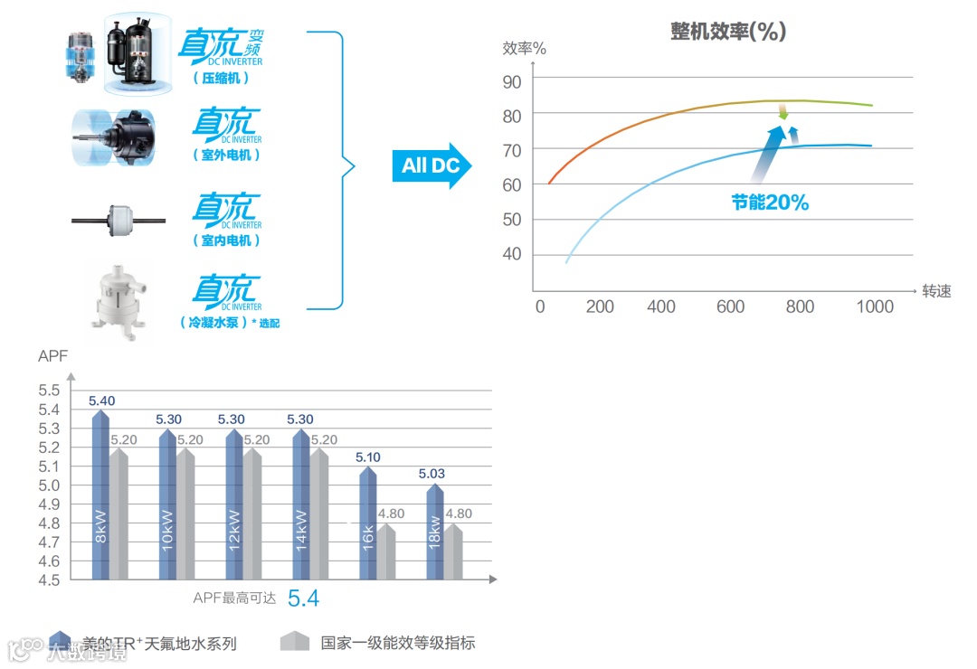 全直流变频技术是美的地暖中央空调实现高效节能的关键所在。该技术选型通过优化压缩机、风扇电机等关键部件的运行效率,显著提高了系统的整体能效。