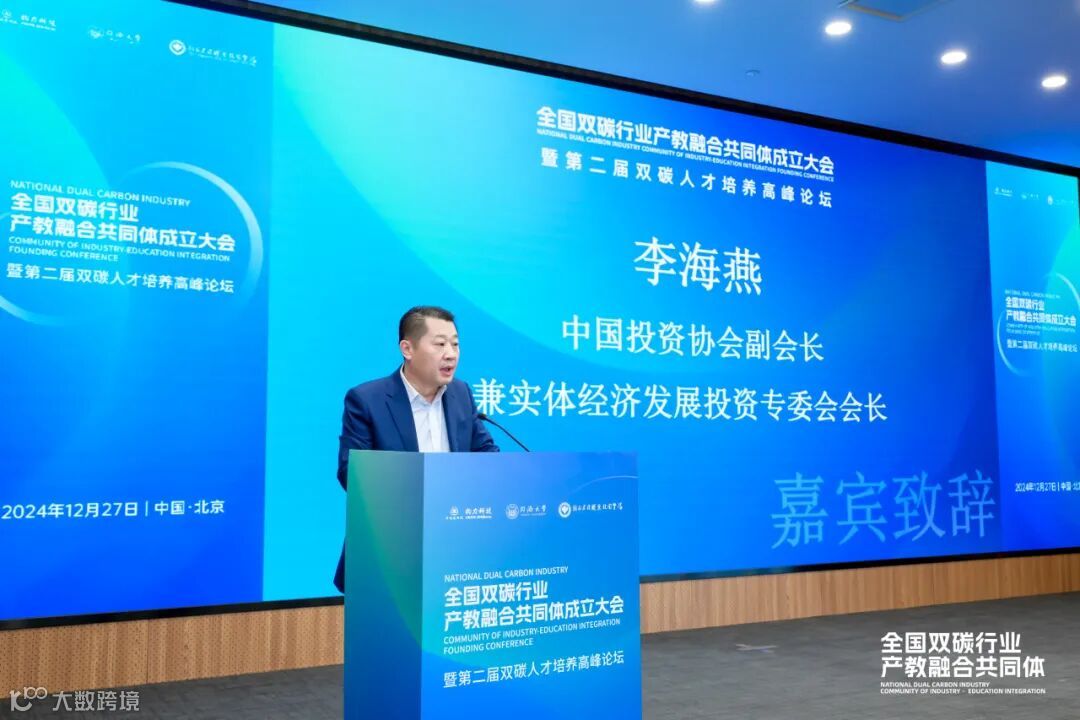 李海燕在致辞中表示全国双碳行业产教融合共同体的成立,是我国双碳事业与教育事业深度融合发展的重要里程碑。中国投资协会将全力支持共同体的建设和发展工作,希望通过这一平台,为双碳行业培养更多高素质、专业化的技术技能人才,为国家的双碳战略目标实现贡献力量。