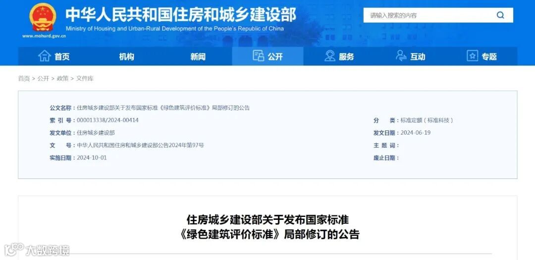 住房和城乡建设部7月11日发布公告,批准国家标准《绿色建筑评价标准》(GB/T50378-2019)局部修订的条文,自2024年10月1日起实施。