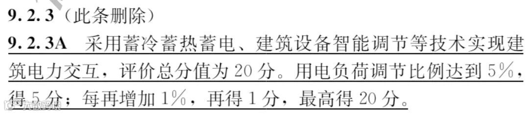 在第9章提高与创新,9.2.3 增加了采用蓄冷蓄热蓄电、建筑设备智能调节等技术实现建筑电力交互技术的加分项,旨在对建筑蓄能例如光储直柔等技术进行加分鼓励。