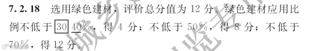 同时,第7章资源节约的7.2.18条绿色建材应用比例得分要求,得4分的比例要求由不低于30%提高至不低于40%。