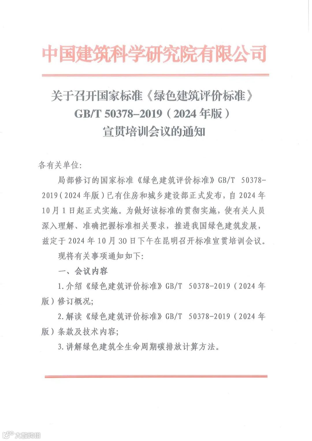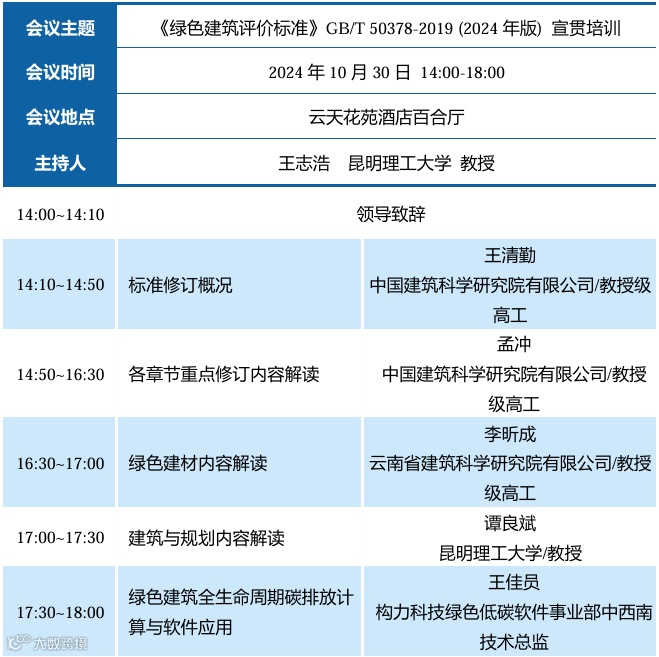 局部修订的国家标准《绿色建筑评价标准》GB/T50378-2019(2024年版)已有住房和城乡建设部正式发布,自2024年10月1日起正式实施。为做好该标准的贯彻实施,使有关人员深入理解、准确把握标准相关要求,推进我国绿色建筑发展,兹定于2024年10月30日下午在昆明召开标准宣贯培训会议。