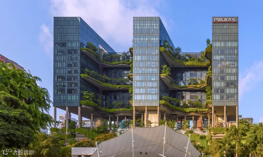 皮克林宾乐雅酒店 (新加坡)皮克林宾乐雅酒店 (PARKROYAL on Pickering) 计划将酒店改造成花园,以增加其所在地的绿化潜力。WOHA Architects 长期以来一直是终极“绿色城市”的倡导者,该城市将由更多的植物构成,而不是像荒野一样。他们通过客房区之间的每四层楼、覆盖着热带植物的巨大弯曲空中花园以及悬臂式支撑的鸡蛋花和棕榈树来实现绿色建筑理念。整个建筑群被植被覆盖,酒店的树木和花园似乎与附近公园的树木和花园融为一体,形成一片连绵不断的城市绿地。新加坡的大多数现代建筑都十分普通,在世界各地都能找到,不受气候和文化的影响,尤其是在市中心及其周边地区。多种因素,包括企业和官僚机构的风险规避、推广全球(同质)形象而非本地形象的愿望,以及半知名国际建筑师的盛行,导致了建筑匿名的平衡点,但一个独特进步的热带城市却被低估了。由于绿色建筑从北面的公园里一眼望去就很明显,建筑师可以做出一个大的(且环保的)绿色建筑设计姿态。因此,该开发项目可以响应许多不同的环境,并可能在各个区域之间建立公共联系。酒店通过投射的空中花园和三间客房的邻近区域“自我遮蔽”。因此,房间可以完全采用低辐射玻璃,而无需额外的屏蔽。虽然流体几何形状具有更高的目的感,但建筑最终是有机的。