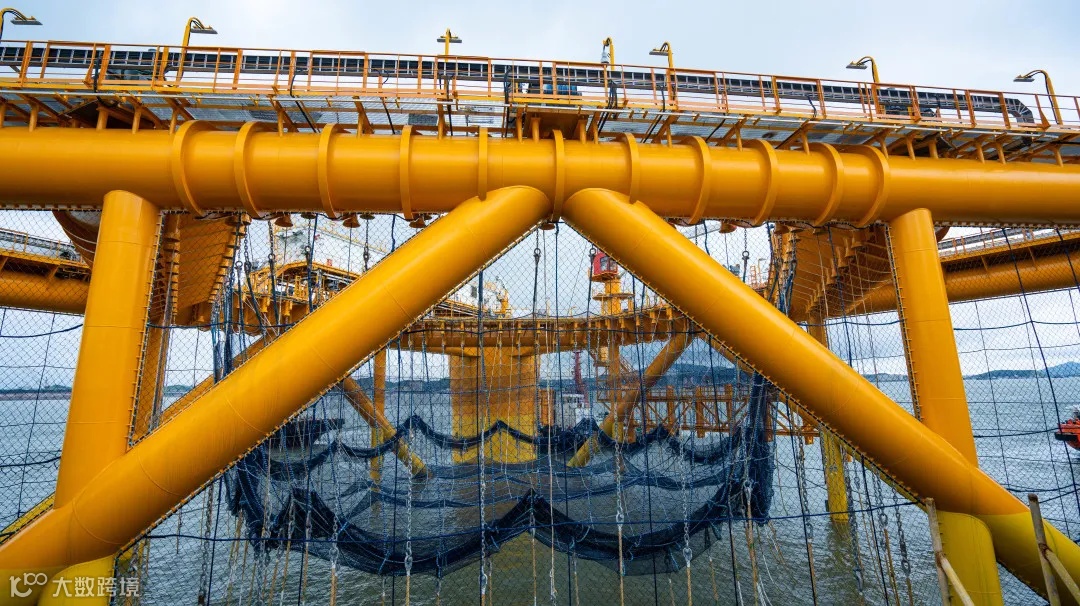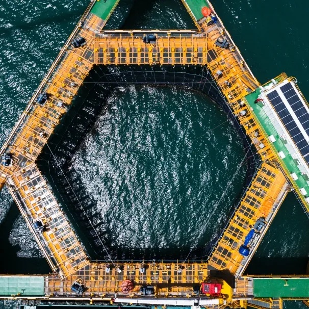 优质网衣►平台养殖网箱网衣选用了低碳低蠕变的超高分子量聚乙烯纤维材料编织,可承受50年一遇极端海况荷载,为国内海洋养殖行业最高标准。