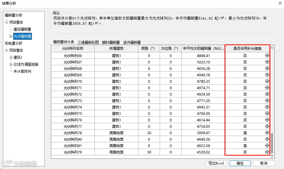 (7)支持补光措施,针对遮挡等位置,补充光伏板辐照量增益