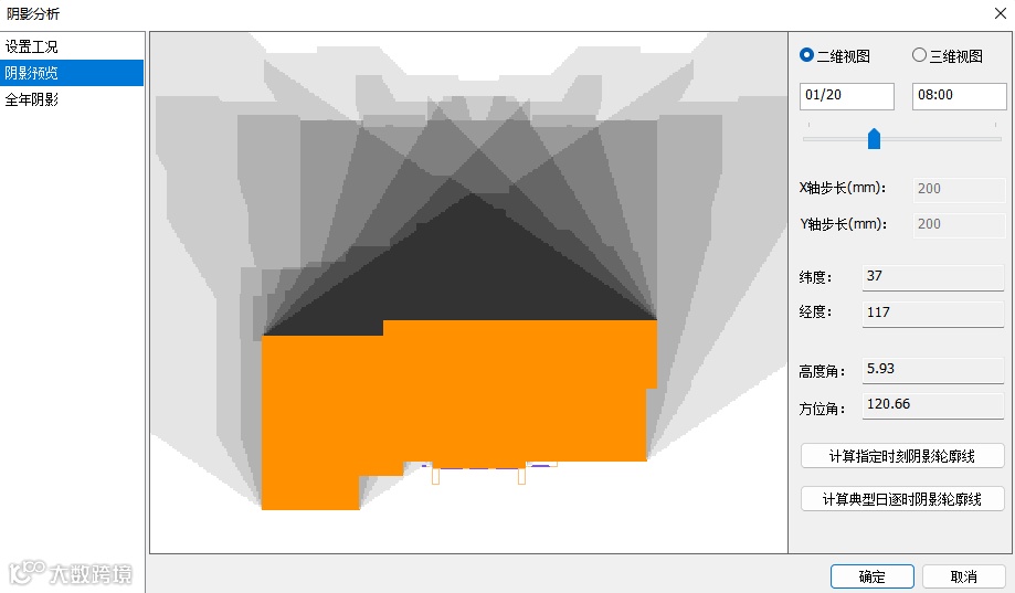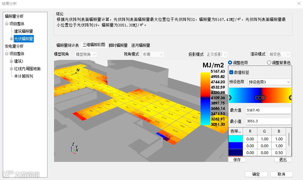 (4)支持阴影分析与全年阴影遮挡小时数统计