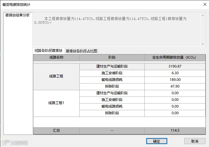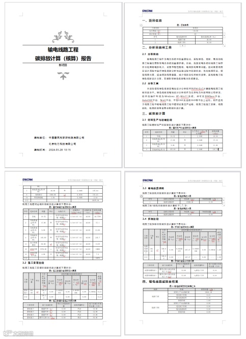 (3)自动生成《输电线路工程全寿命期碳排放计算分析报告书》
