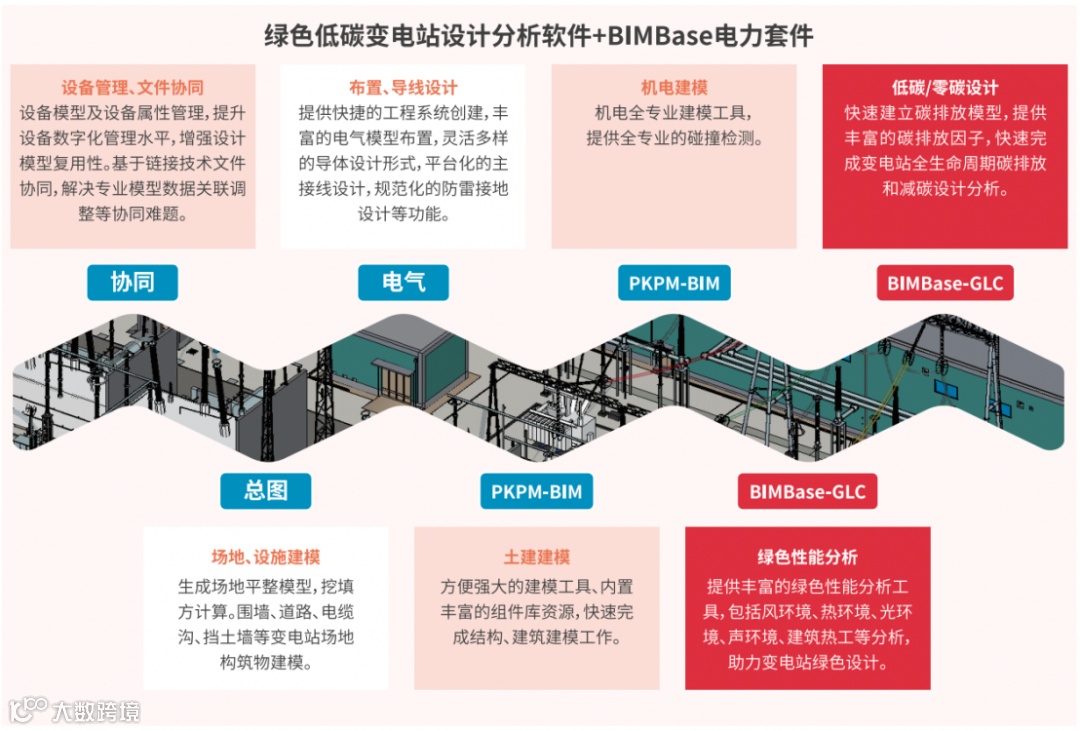 于是我学习了国产“BIMBase电力套件”,通过建立变电站三维设计BIM模型及土建、运行工艺、温室气体耗散等全面的碳排放计算模型,智能自动设置相应的碳排放因子,科学高效的在设计阶段预测变电站全生命周期碳排放,终于可以为变电站的建筑本体减碳、变电设备减碳以及太阳能光伏、绿化碳汇等综合措施分析提供帮助。