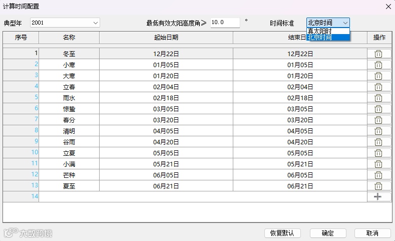 根据鉴定专家建议,增加了真太阳时/北京时间表述的选择,作为输出报告书时不同的计算时间表达方式,默认为幕墙光反射分析时更常用的真太阳时,设计师也可根据自己或专家需求进行选择。