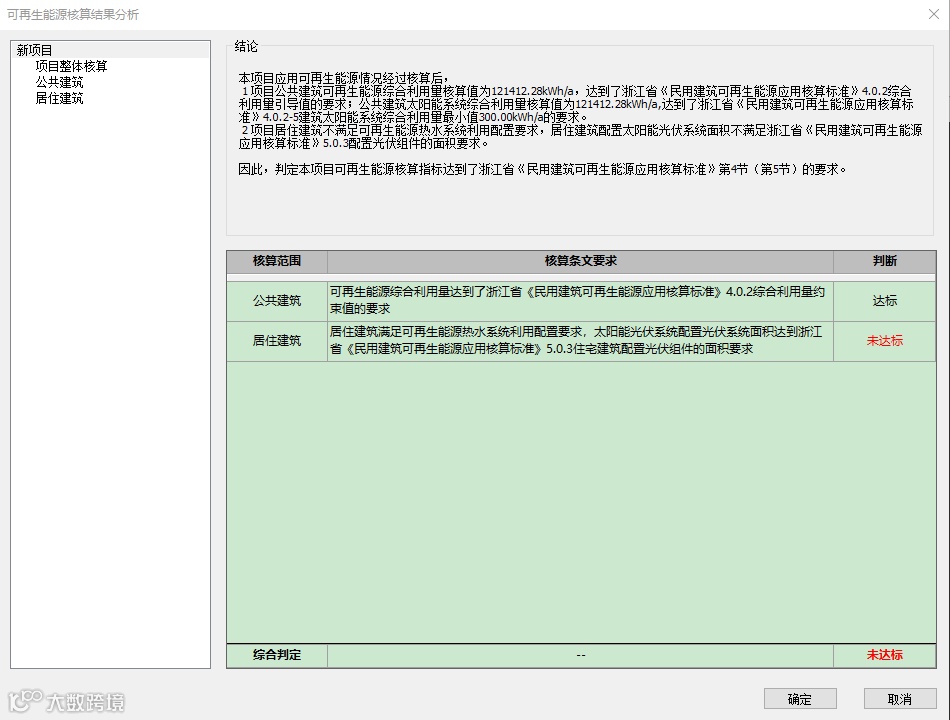 详细的结果分析,判断项目是否符合浙江省《民用建筑可再生能源应用核算标准》的要求,将繁复的工作交给软件,自动生成符合要求的可再生能源分析报告。