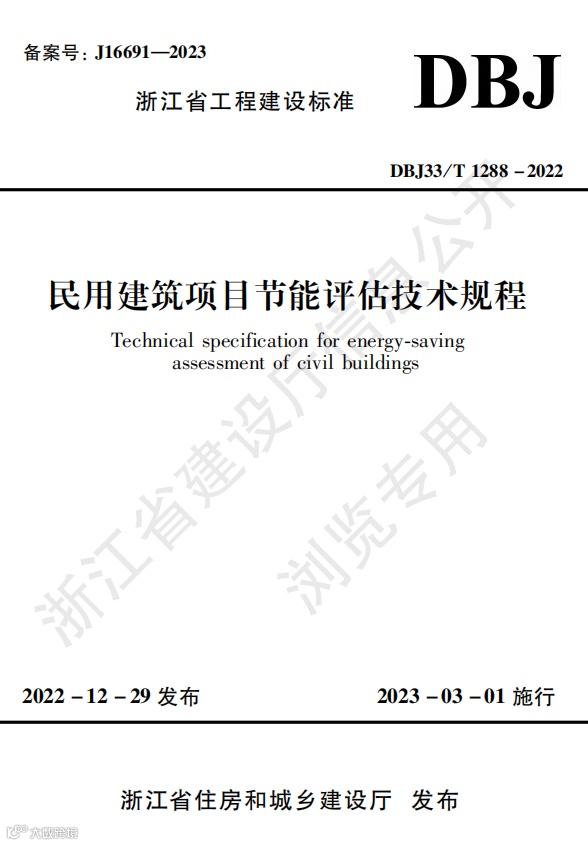 浙江省《民用建筑项目节能评估技术规程》DBJ33/T 1288-2022