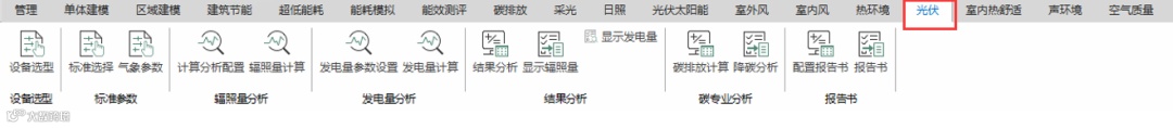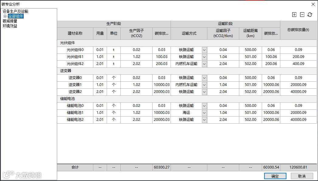 4)可选择光伏计算参数:可直接读取设备相关参数进行辐照及发电计算。碳专业分析可以对光伏组件、逆变器等光伏系统设备进行建材生产运输阶段碳排放的计算。