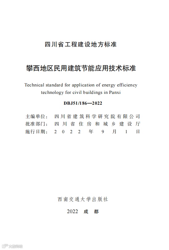 2)《攀西地区民用建筑节能应用技术标准》DBJ51/T 186-2022