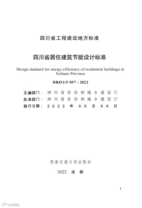 说明:适用于四川省居住建筑,为节能设计主要依据,围护结构性能较修订前的版本要求有提高。