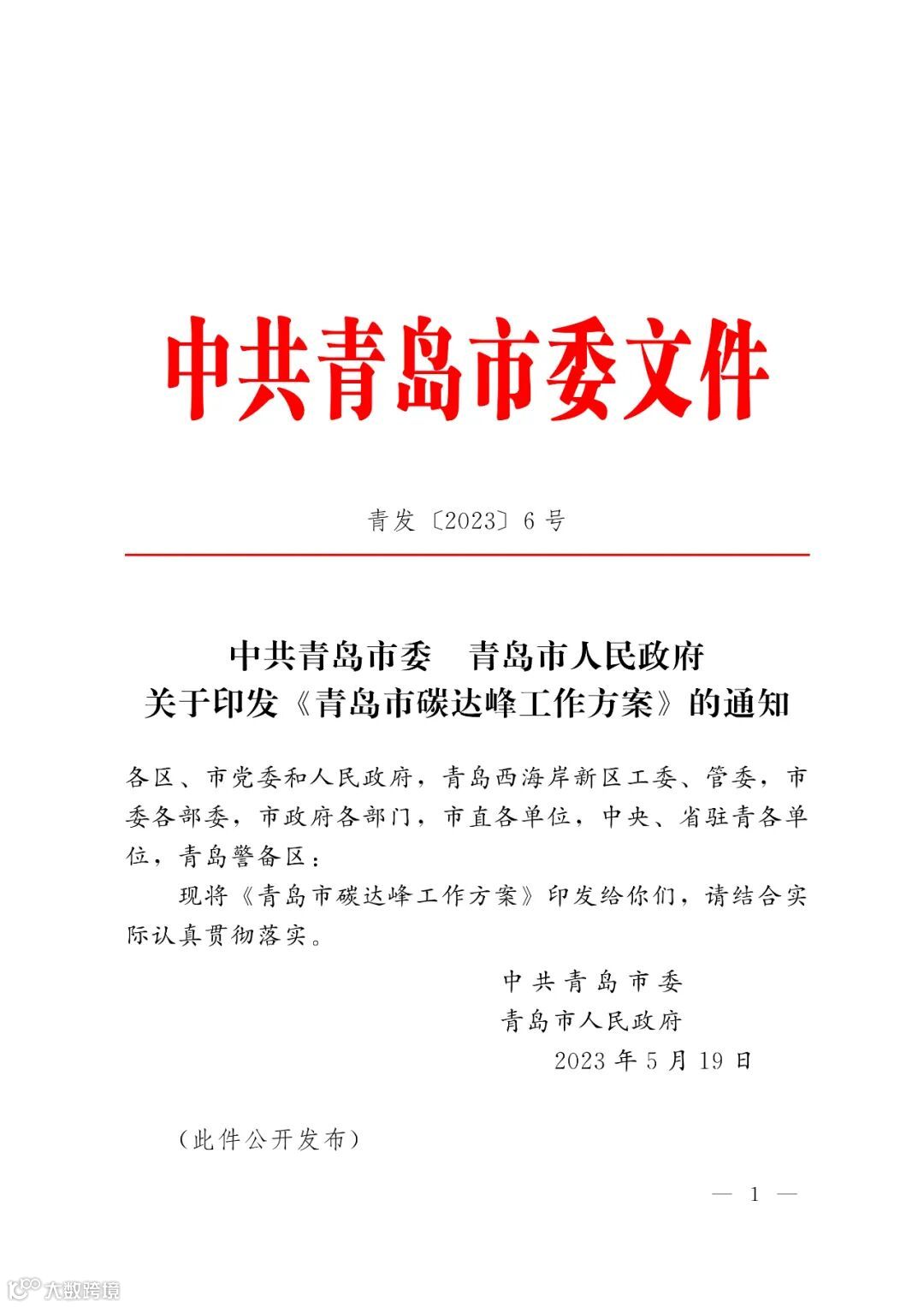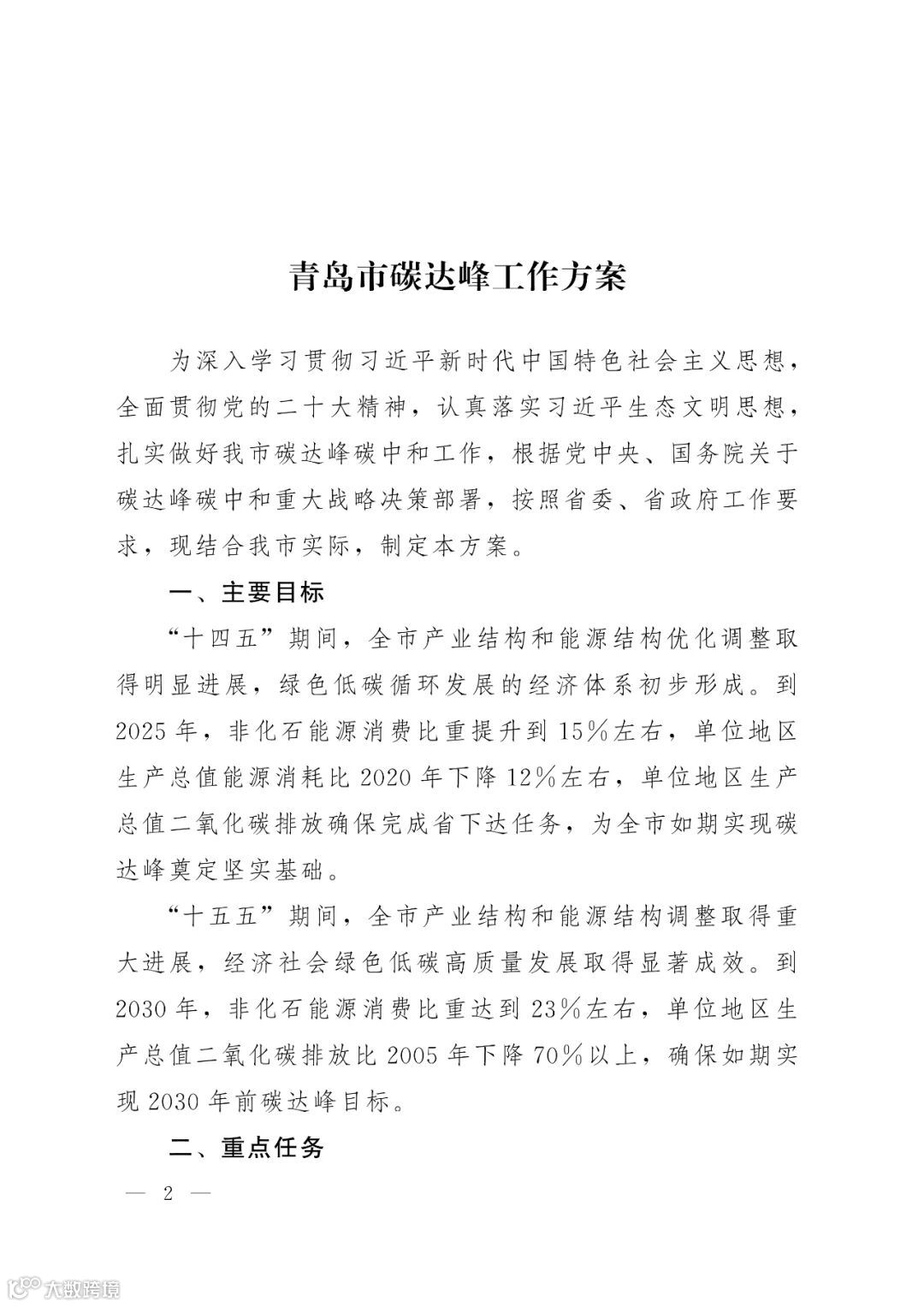 导读:《青岛市碳达峰工作方案》印发