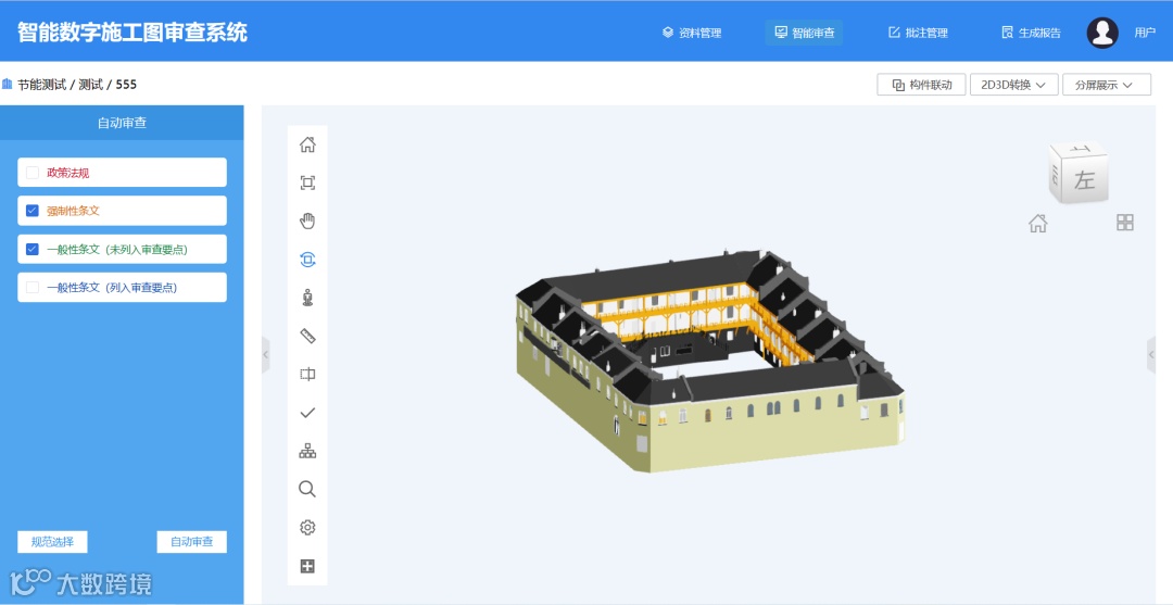 为应对国家及青岛市关于智能数字施工图审查的相关政策、标准,加快行业数字化、智能化进程,中国建筑科学研究院构力科技助力青岛完成全国首个国产化适配施工图审查系统——青岛智能数字施工图审查系统(含节能专项审查)。该系统提供三维浏览、自动审查、手工辅助审查、自动出审查报告(含节能专业审查意见)等功能,进一步促进审图工作效率的提高,规范操作流程,推动BIM技术应用。